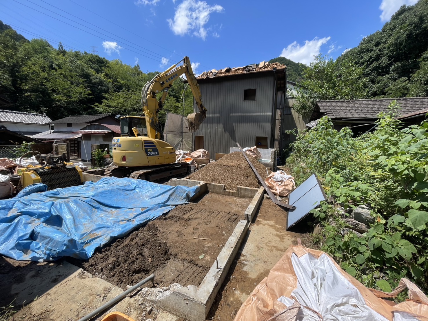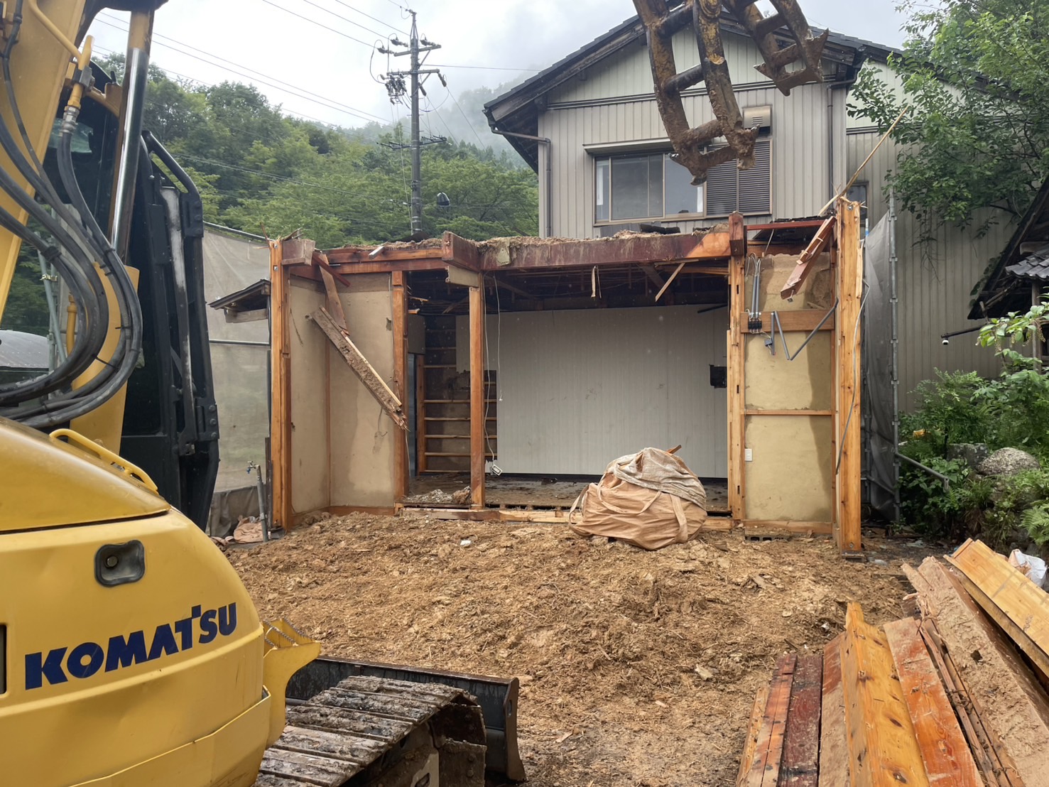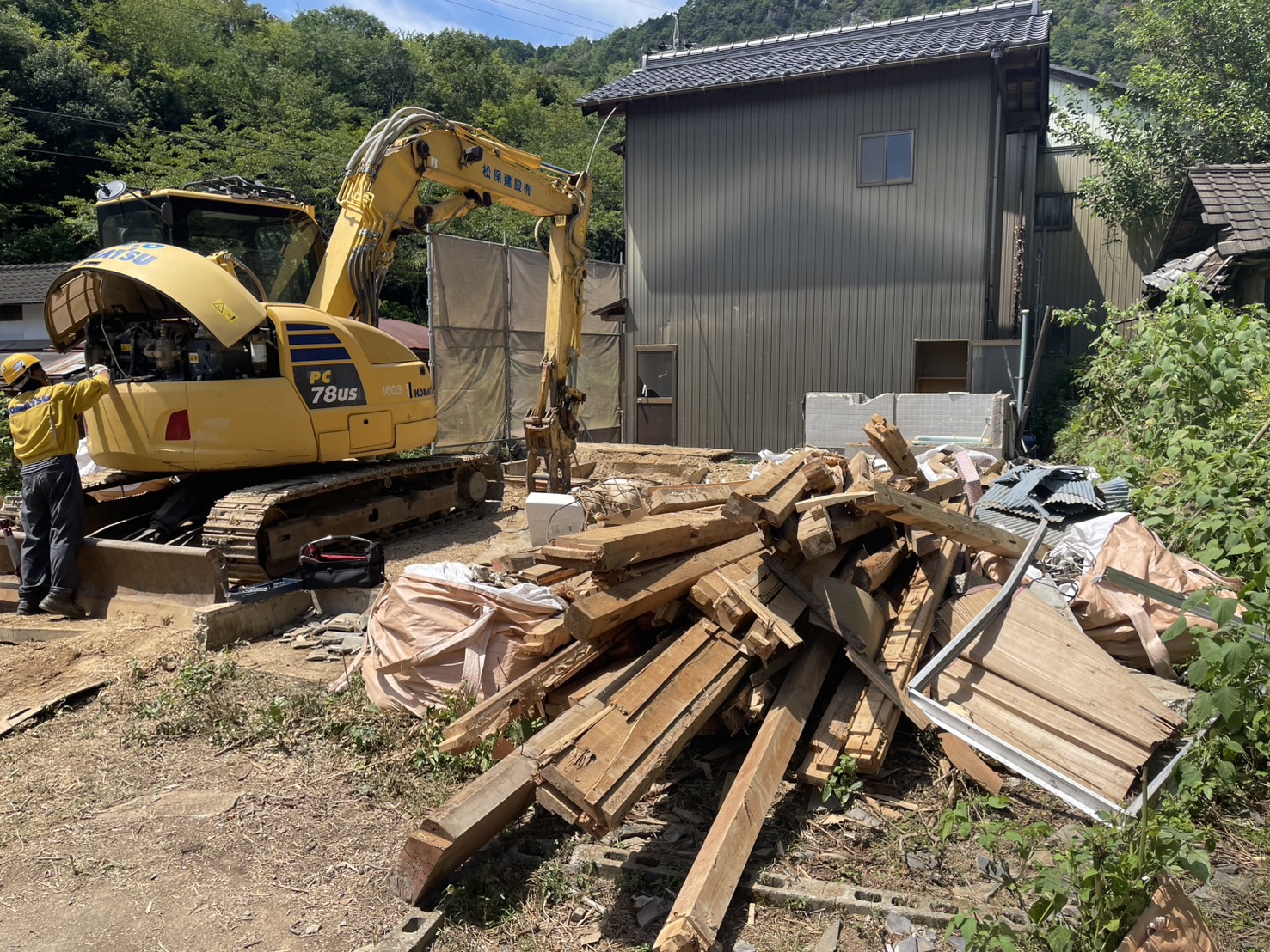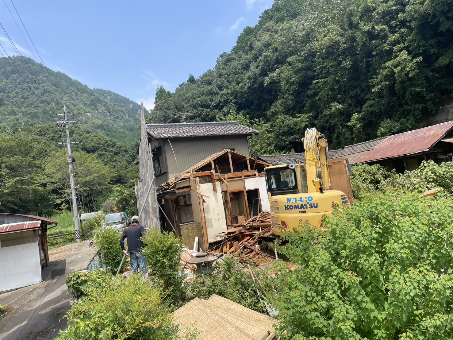緑に囲まれた山間部での解体工事なので、自然環境に配慮しながら慎重に作業しました。